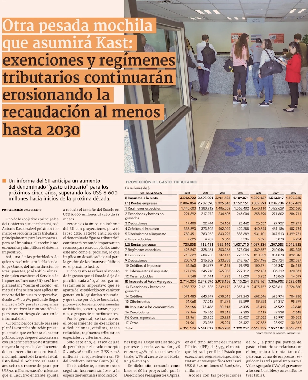 Reforma tributaria, "permisología" y tarifas eléctricas: desafíos económicos de la segunda línea de Kast - (El Mercurio de Santiago)