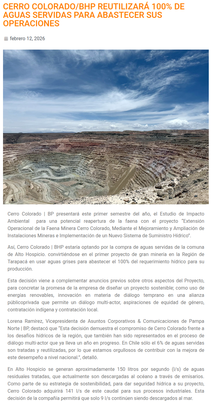Cerro Colorado | BHP propondrá innovadora fuente hídrica sustentable para proyecto de reapertura - (portalinnova.cl)