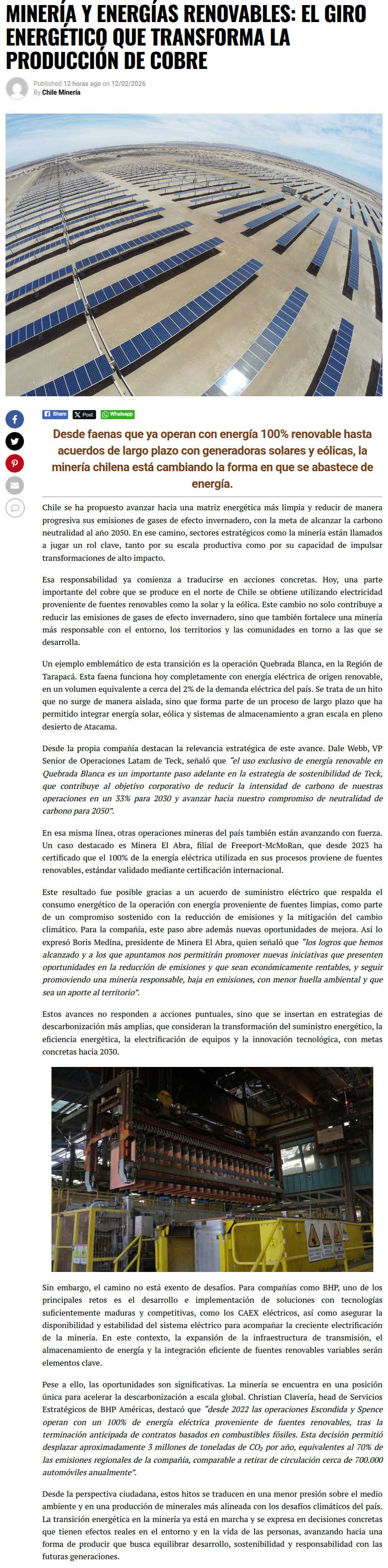 Minería chilena y energías renovables: el giro energético que transforma la producción de cobre - (portalinnova.cl)