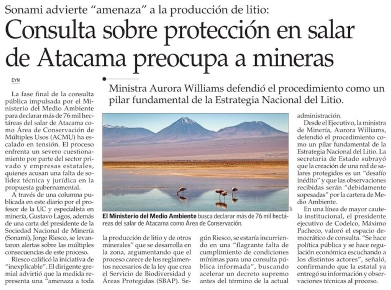 Empresas mineras presentan reparos a propuesta de área protegida en el Salar de Atacama - (madero.cl)