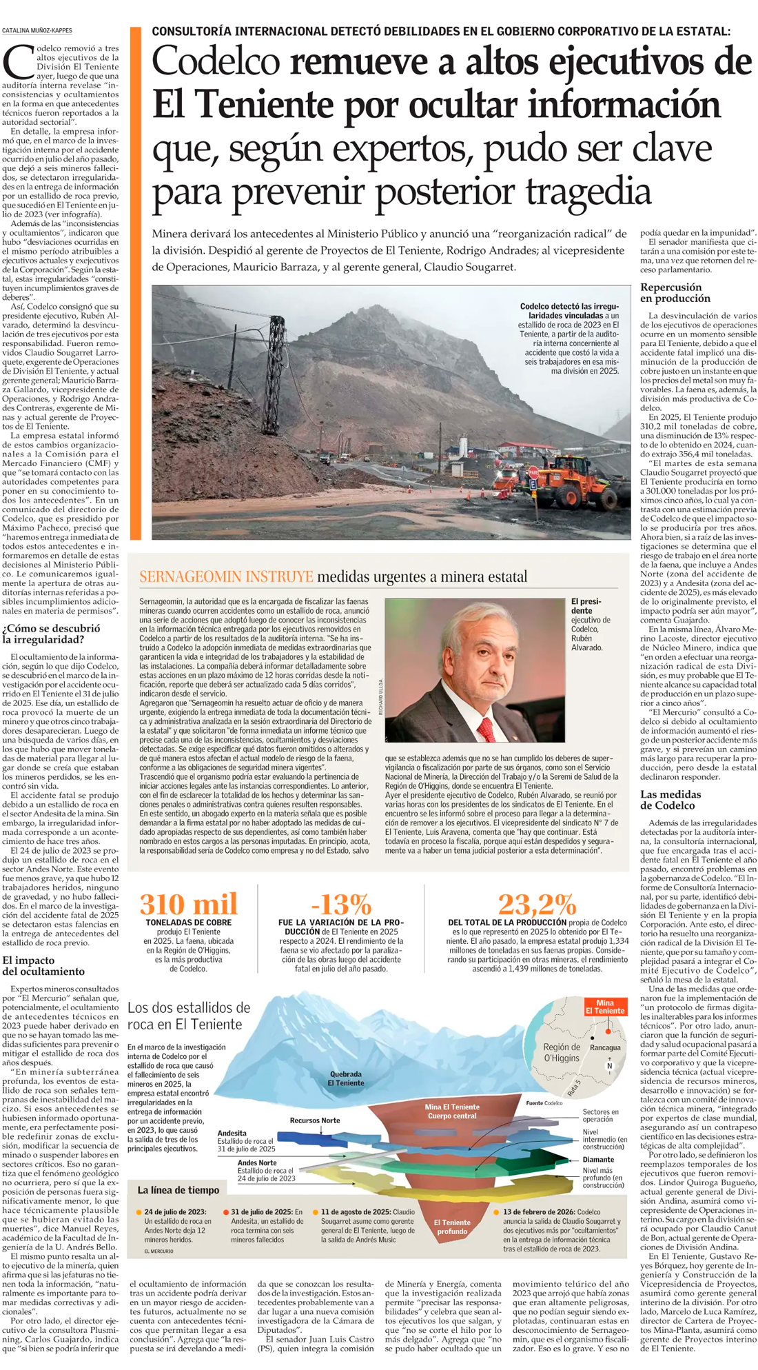 El Teniente: Codelco activa nuevas auditorías y querellantes estudian acciones judiciales - (La Tercera)