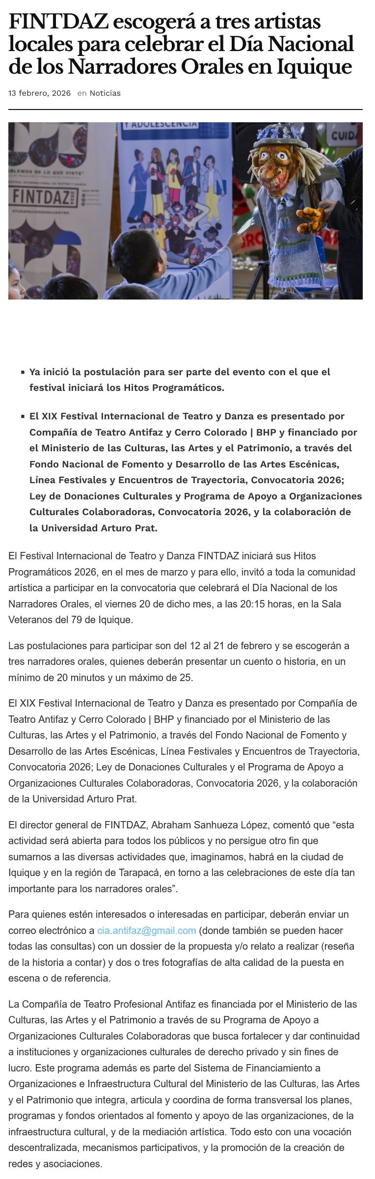 FINTDAZ escogerá a tres artistas locales para celebrar el Día Nacional de los Narradores Orales en Iquique - (elreporterodeiquique)