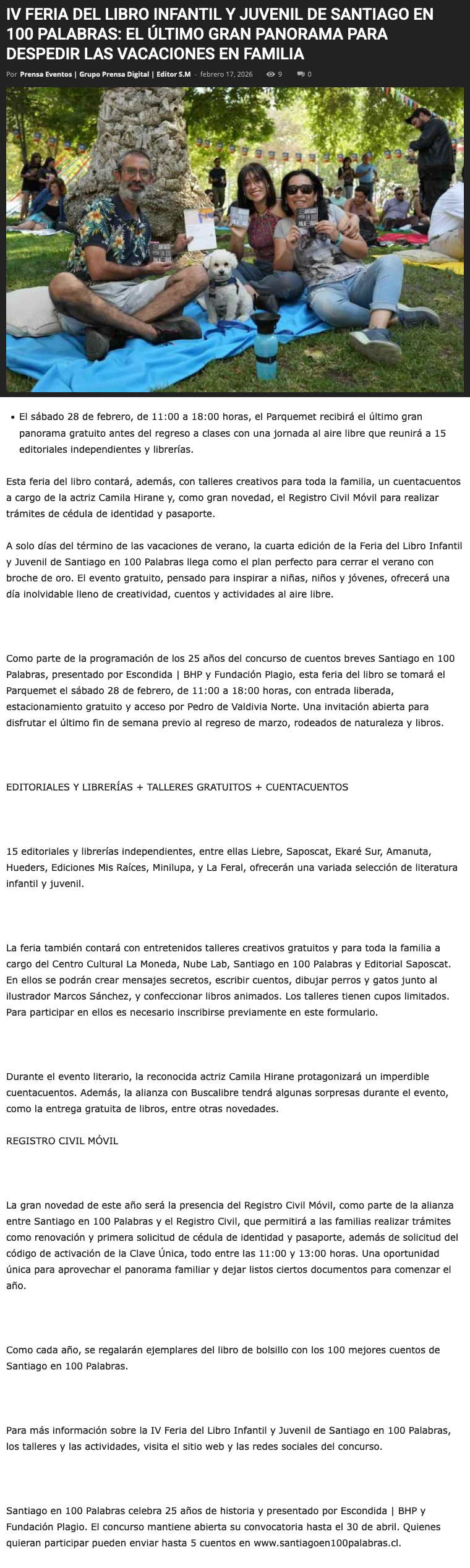 IV Feria del Libro Infantil y Juvenil de Santiago en 100 Palabras: plan ideal para cerrar las vacaciones - (radioagricultura.cl)