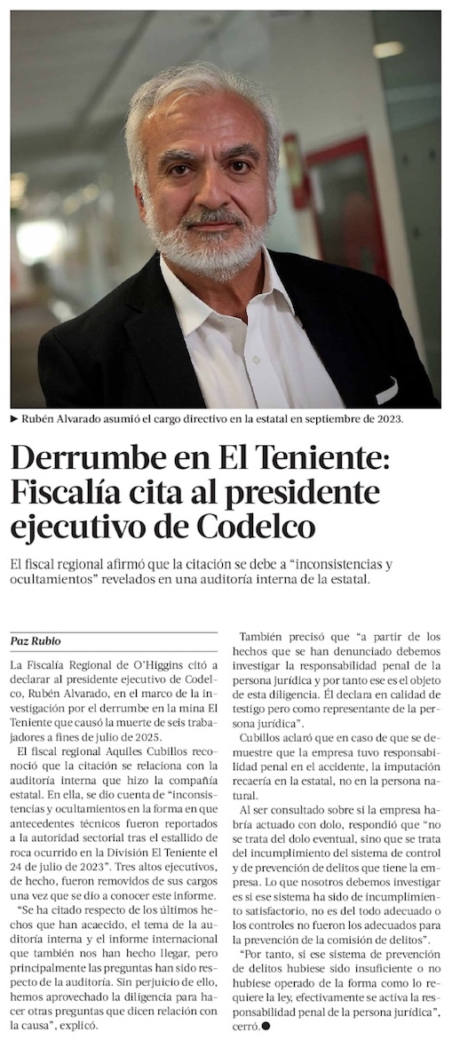 Sernageomin y El Teniente: «Hemos solicitado acceso directo a la información técnica de monitoreo en tiempo real» - (mch.cl)