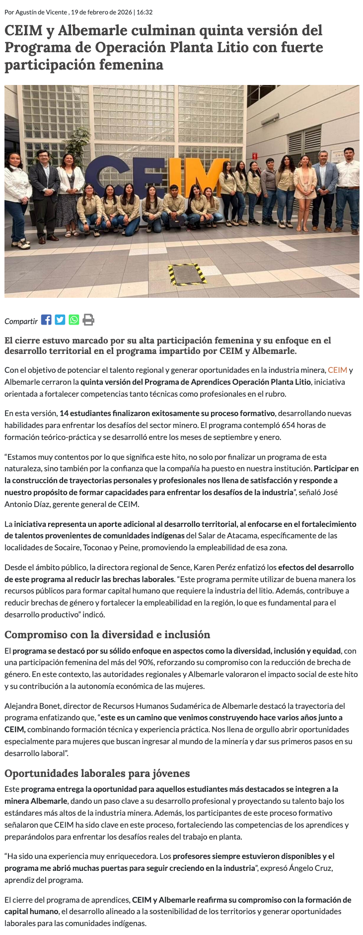 Jueves, 19 de Febrero de 2026