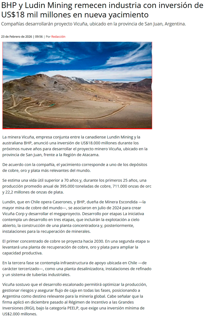 Mega inversión minera en la cordillera: Anuncian US$18 mil millones para proyecto Vicuña en la región de Atacama - (madero.cl)