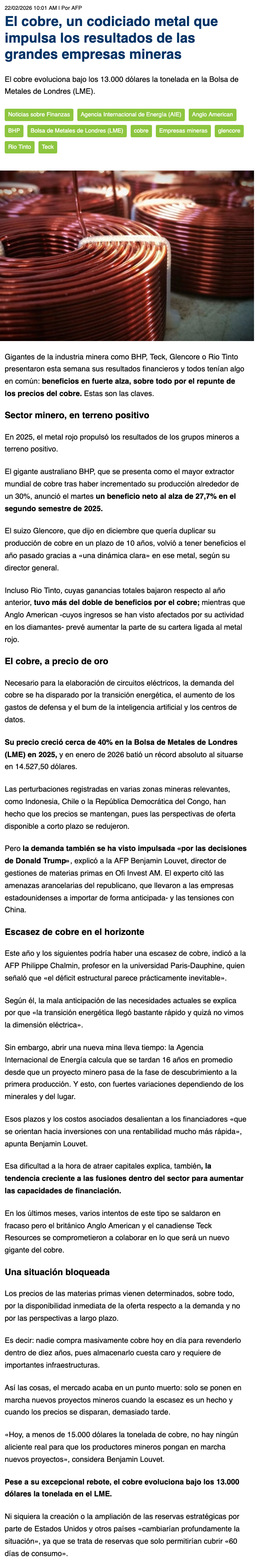 El cobre a precio del oro con récord: un metal cada vez más codiciado - (diarioeldia online)