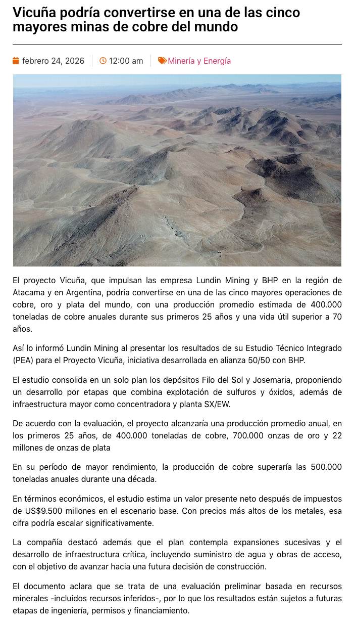 Proyecto Vicuña: US$18.000 millones para una mina binacional con 70 años de cobre frente a Atacama - (redimin)