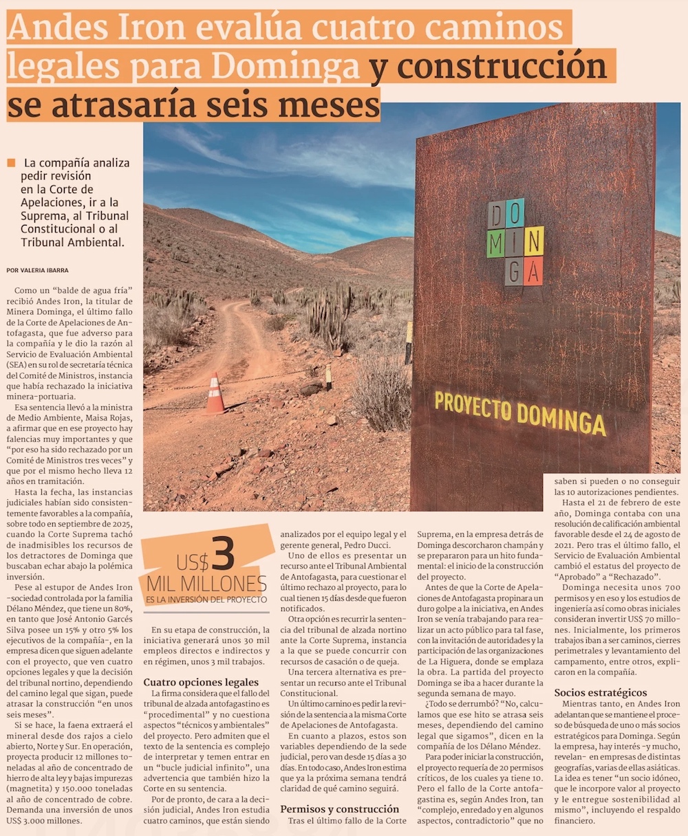 Pese a último revés judicial no decae optimismo de Andes Iron y presentará proyecto Dominga en feria mundial en Canadá - (Pulso)