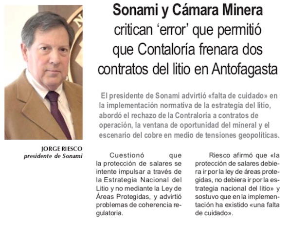 Jorge Riesco, presidente de Sonami: “Chile podría ser el mayor productor de litio del mundo” - (El Mercurio de Santiago)