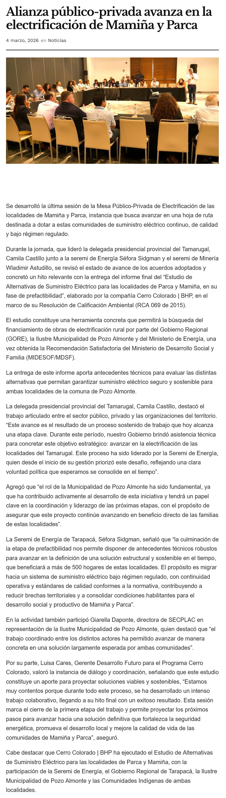 Alianza público-privada avanza en la electrificación de Mamiña y Parca - (tarapacaonline)