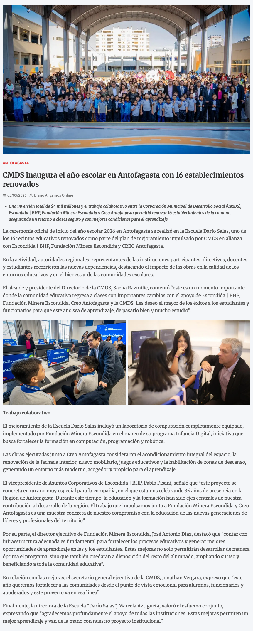 $4 mil millones en inversión: CMDS inaugura año escolar con 16 establecimientos renovados en Antofagasta - (soyantofagasta)