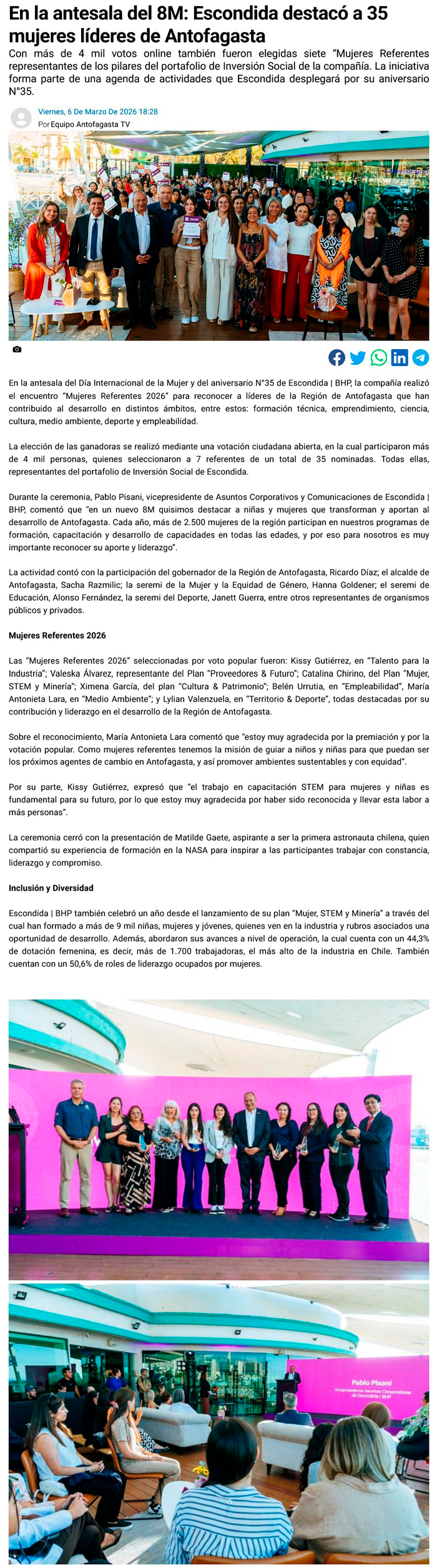 A horas del 8M: Escondida destacó a 35 mujeres líderes por su aporte a la Región de Antofagasta - (soyantofagasta)