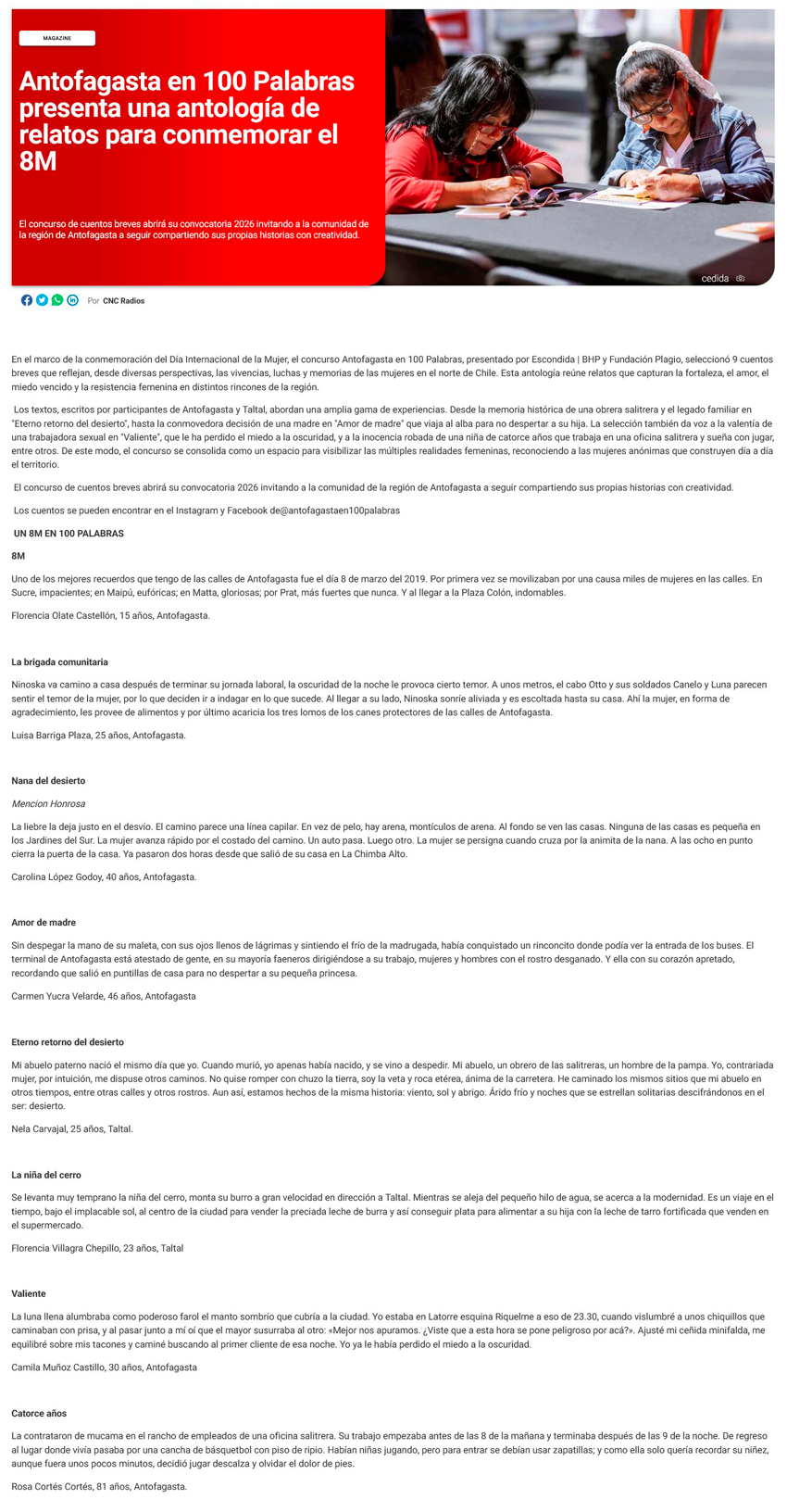 Antofagasta en 100 Palabras presenta una antología de relatos para conmemorar el 8M - (fmquiero.cl)