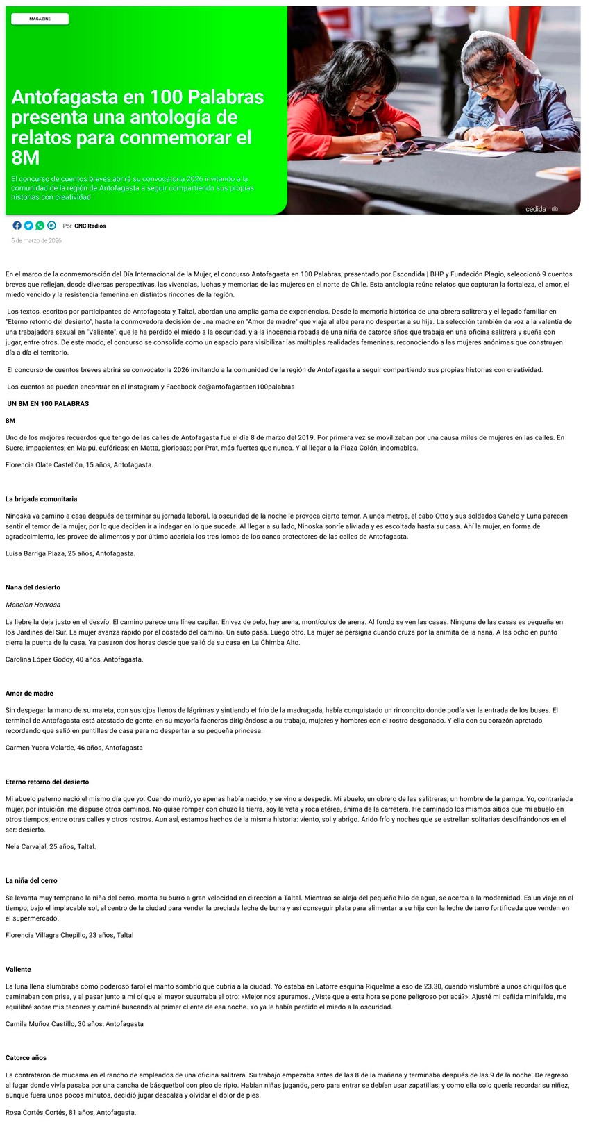 Antofagasta en 100 Palabras presenta una antología de relatos para conmemorar el 8M - (fmquiero.cl)