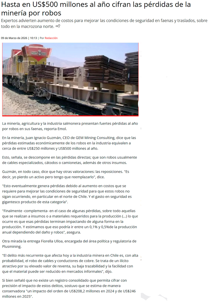 Pérdidas por US$500 millones causan los robos en la minería - (Hoy x hoy)