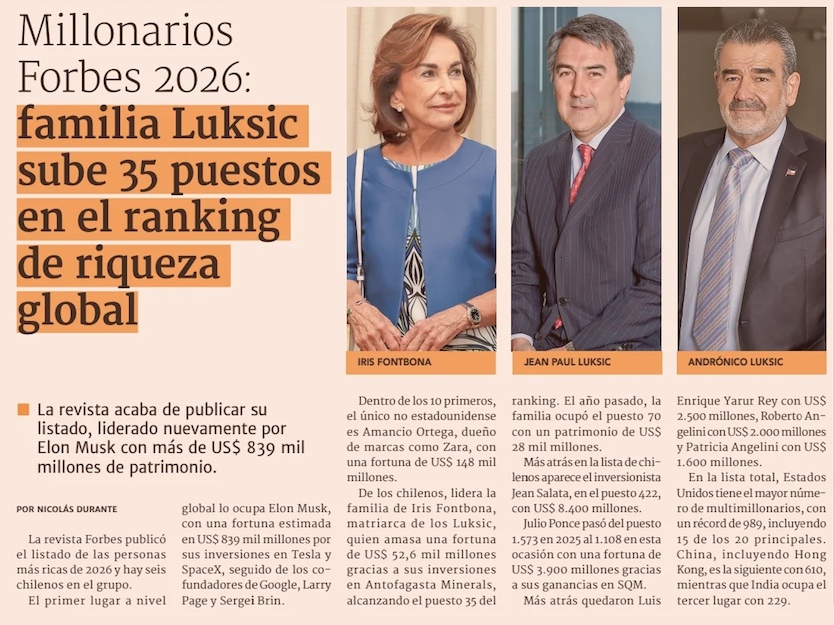 Seis chilenos integran el ranking Forbes de las mayores fortunas globales - (El Mercurio de Santiago)