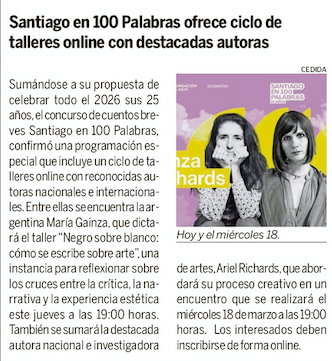 Santiago en 100 Palabras ofrece ciclo de talleres online - (Estrella de Concepción)