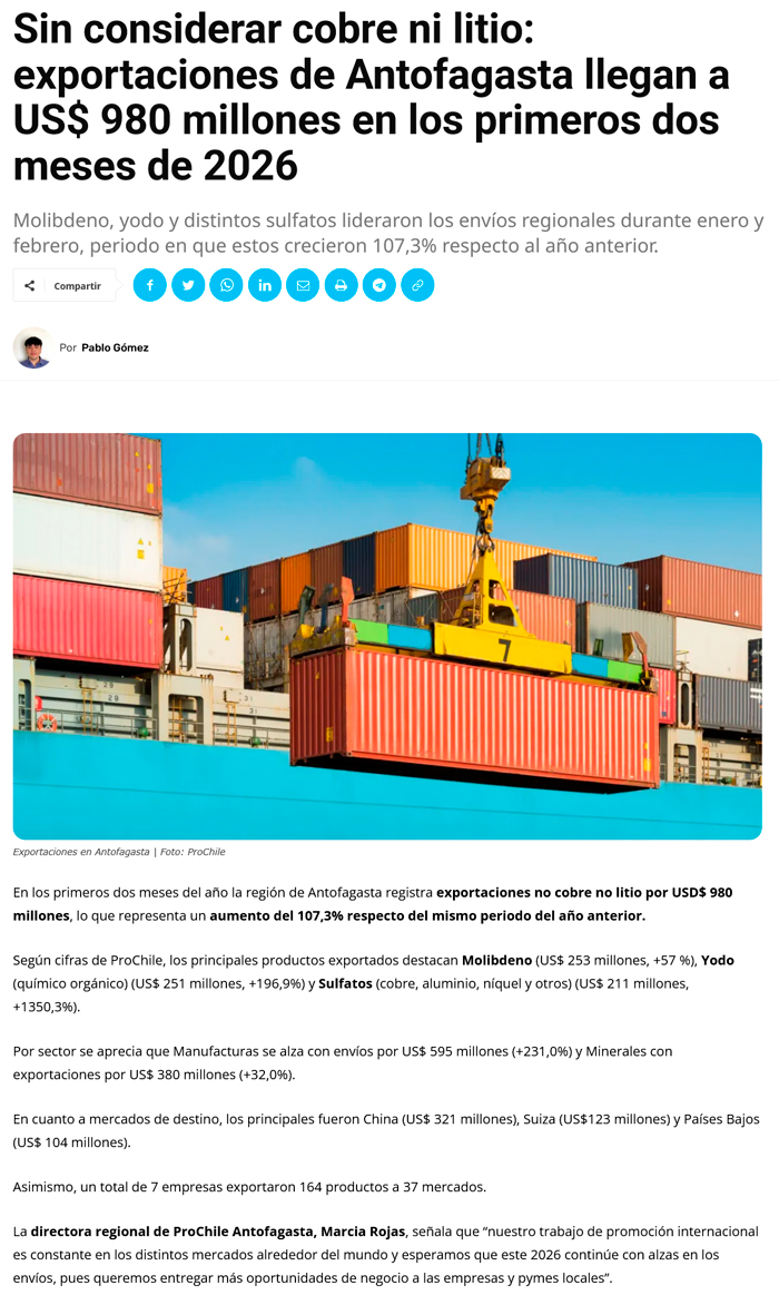 Envíos de litio llegan a US$895 millones en los primeros meses del año y superan el doble del año pasado - (soyantofagasta)