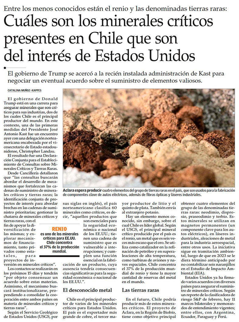 Chile y EE.UU. inician conversaciones para un posible acuerdo por minerales críticos y tierras raras - (Pulso)