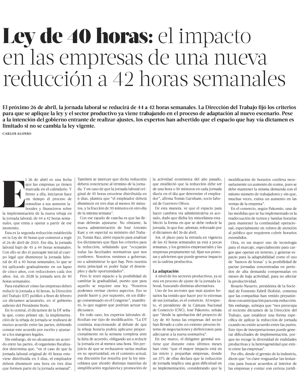 40 horas: Gobierno descarta cambios en cronograma, pero adelanta revisión en temas de colación y control de jornada - (Diario Financiero)