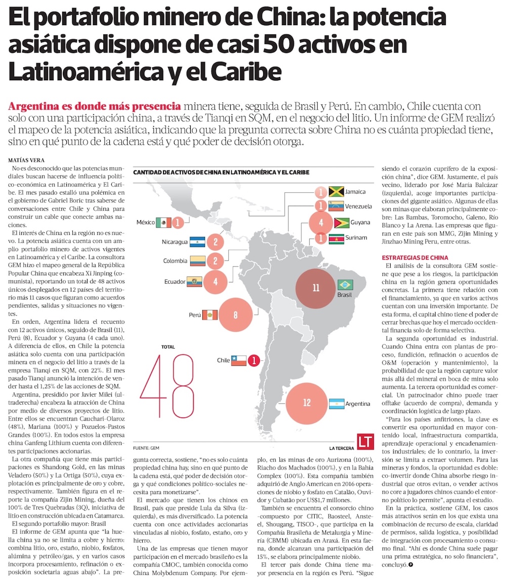 El portafolio minero de China: La potencia asiática dispone de casi 50 activos en Latinoamérica y El Caribe - (La Tercera Online)
