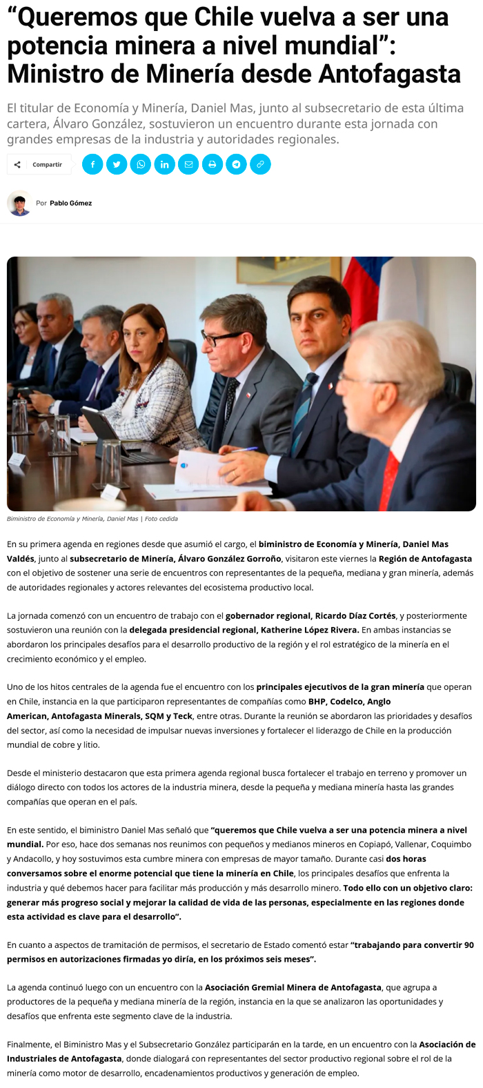 «Queremos que Chile vuelva a ser una potencia minera mundial»: Biministro Mas lanzó ambicioso plan de inversión en Antofagasta - (antofagastaaldia.cl)