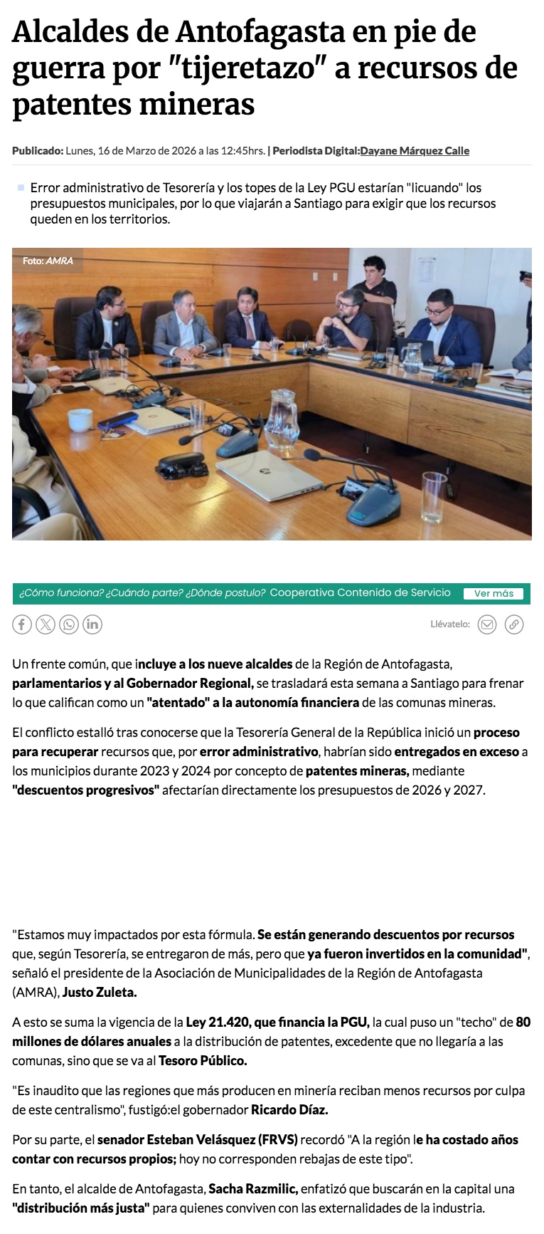 Molestia en municipios de la región de Antofagasta por fórmula que les asigna menores recursos por ingresos de patentes mineras - (timeline)