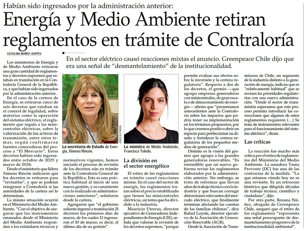 Administración Kast retira para revisión casi 50 decretos ambientales y eléctricos de Contraloría - (Pulso)