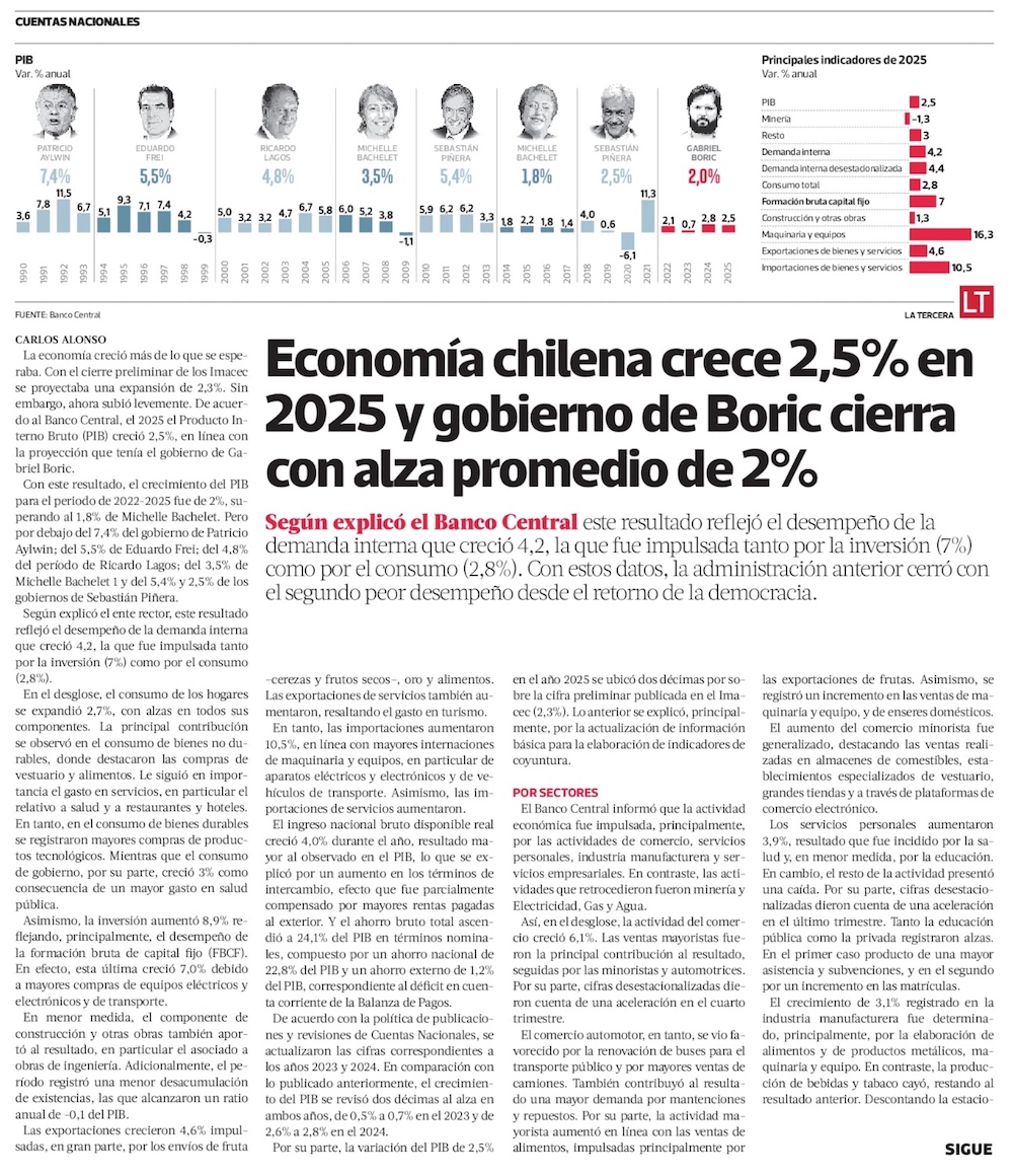 PIB 2025 instala a Boric con el segundo menor crecimiento desde 1990 y la guerra ensombrece pronósticos - (Diario Financiero)