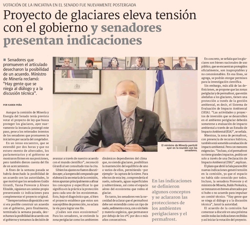 Indicaciones a proyecto de glaciares compatibilizarían actividades en sus cercanías - (El Mercurio de Santiago)