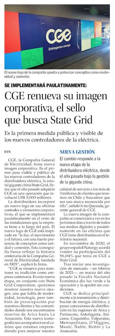 De España a China: el cambio de imagen que State Grid le hizo a CGE - (Diario Financiero)