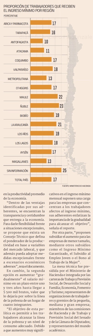El 17% de los trabajadores gana en torno al salario mínimo y en mayor medida son mujeres - (El Mercurio de Santiago)