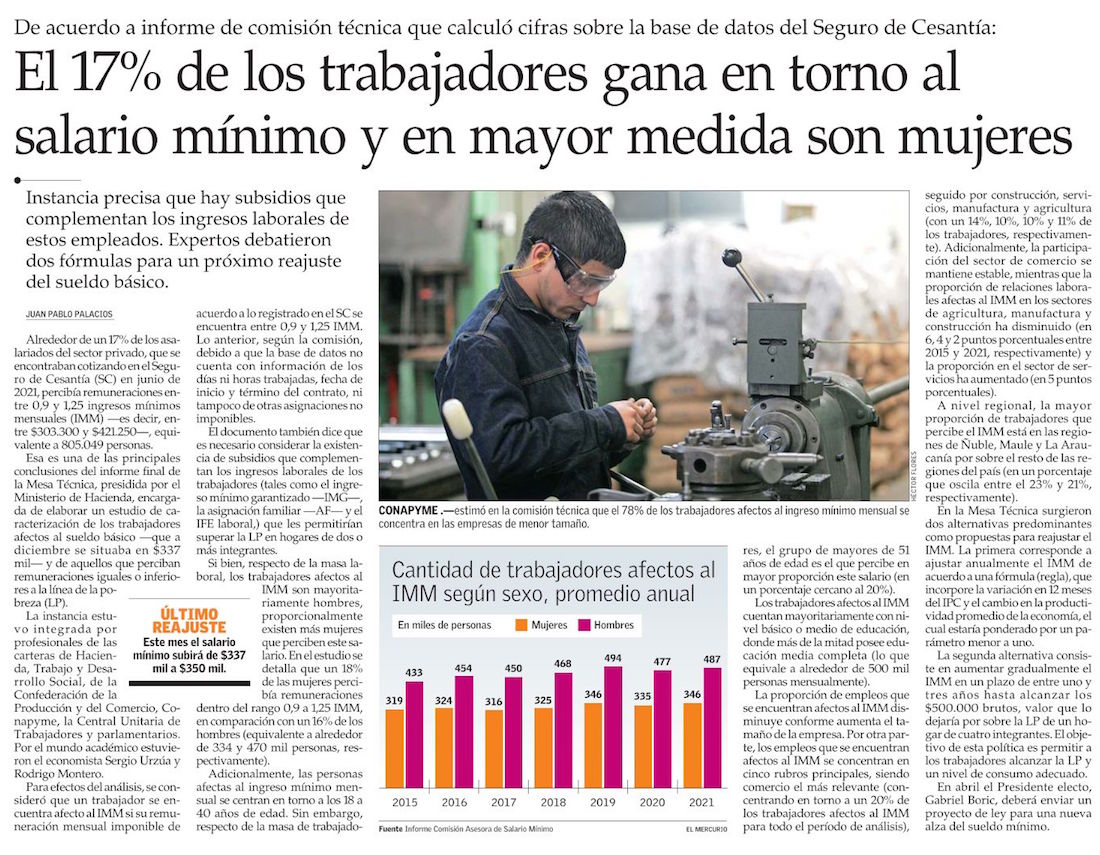 Salario mínimo: cinco sectores lo lideran y la mayoría trabaja en pequeñas empresas - (Diario Financiero)