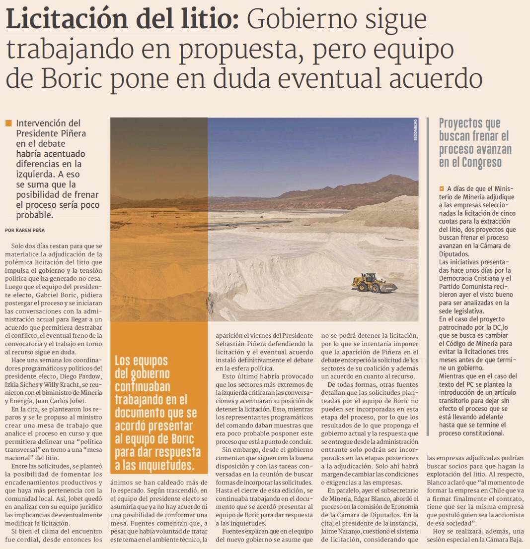Gobierno busca fórmulas para acoger reparos del equipo de Boric en licitación del litio - (Pulso)