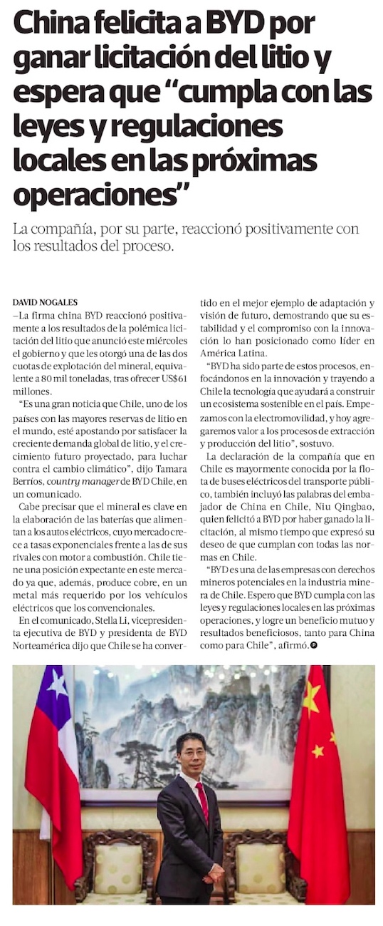 El empresario chino detrás de los ganadores de la licitación del litio - (La Segunda)