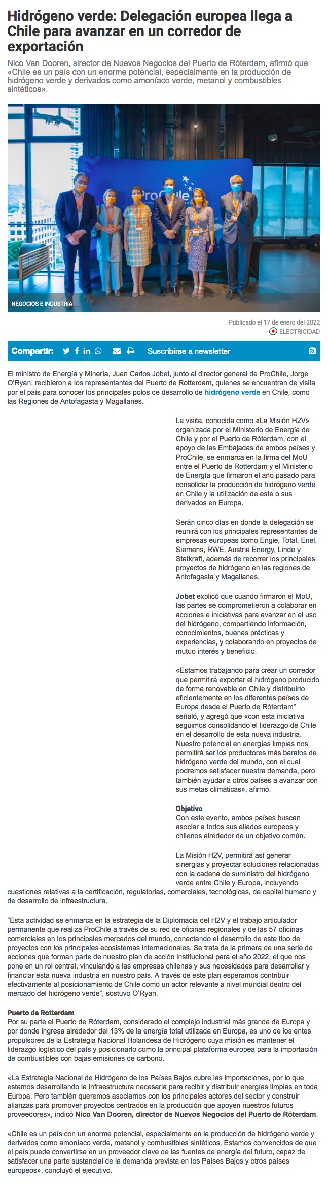 Llega a Chile delegación europea que trabajará para la creación de un corredor de exportación de hidrógeno verde - (DF Online)