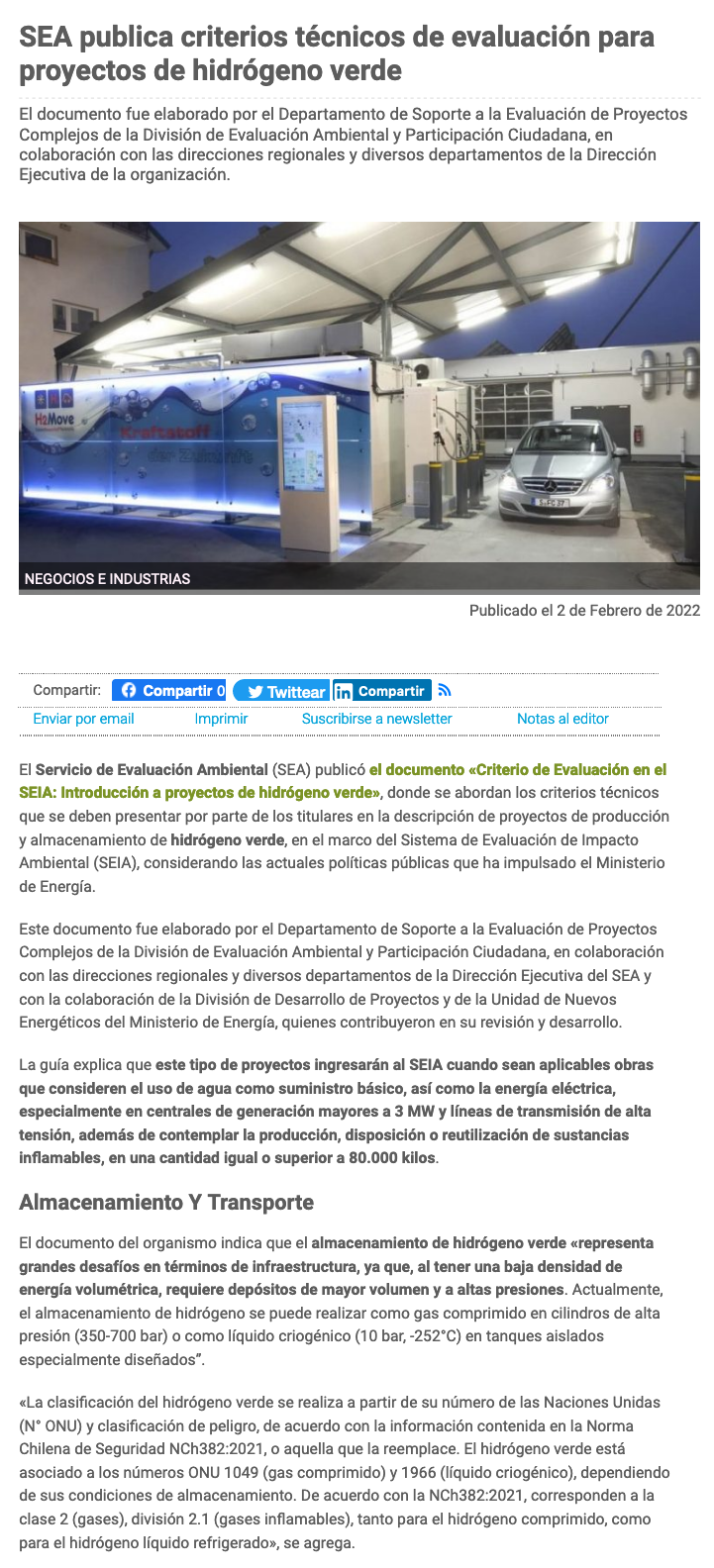 SEA publica criterios técnicos de evaluación para proyectos de hidrogeno verde - (chilesustentable.net)