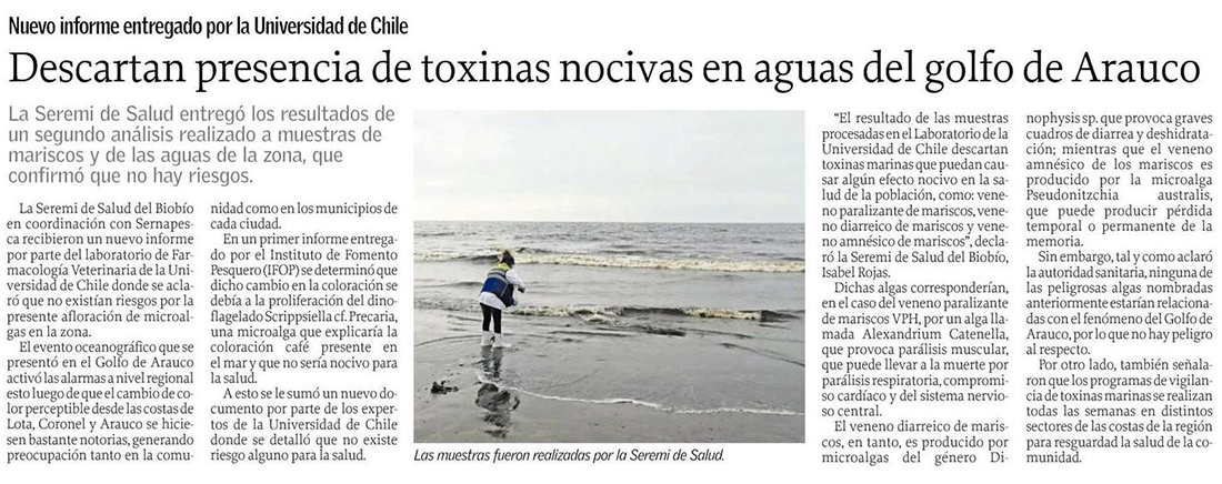 Descartan toxinas en el Golfo de Arauco - (Estrella de Concepción)