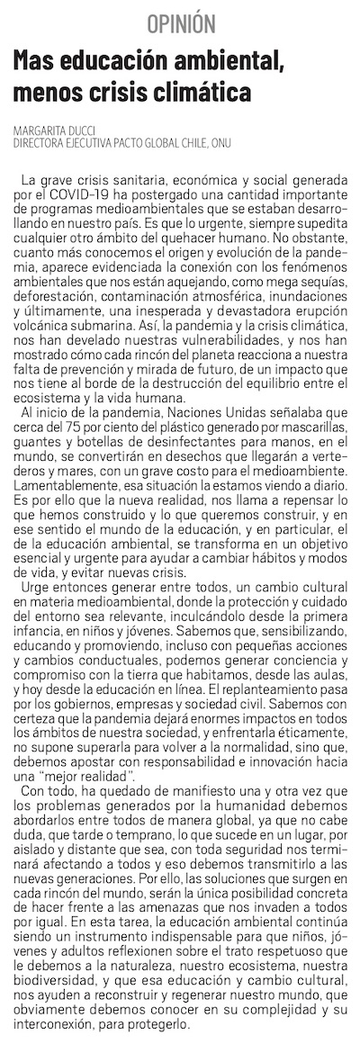 Más educación ambiental, menos crisis climática - (El Mercurio de Antofagasta)