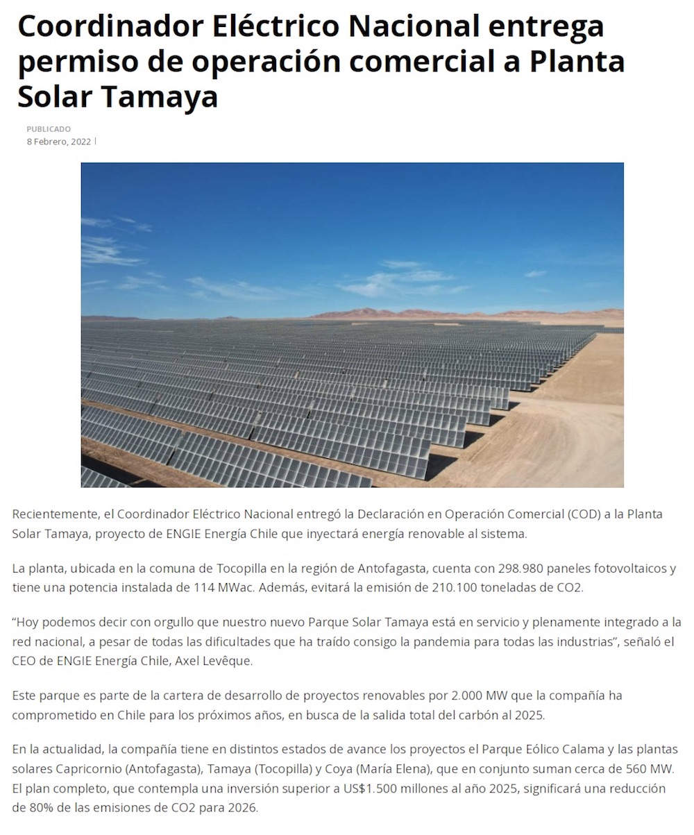 Coordinador Eléctrico Nacional entrega permiso de operación comercial a Planta Solar Tamaya - (reporteminero)