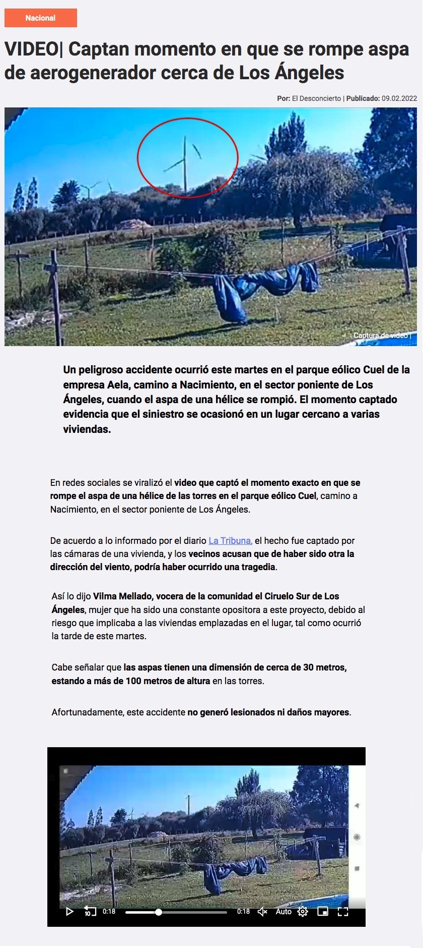 Paralizan operaciones de parque eólico Cuel tras desprendimiento de aspa en Los Ángeles - (biobiochile online)