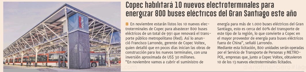 Copec Voltex proyecta para noviembre el inicio del funcionamiento de 10 electroterminales - (El Mercurio de Santiago)