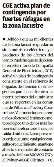 CGE activa plan para reactivación para reactivar servicio en sectores afectados - (El Austral de La Araucanía)