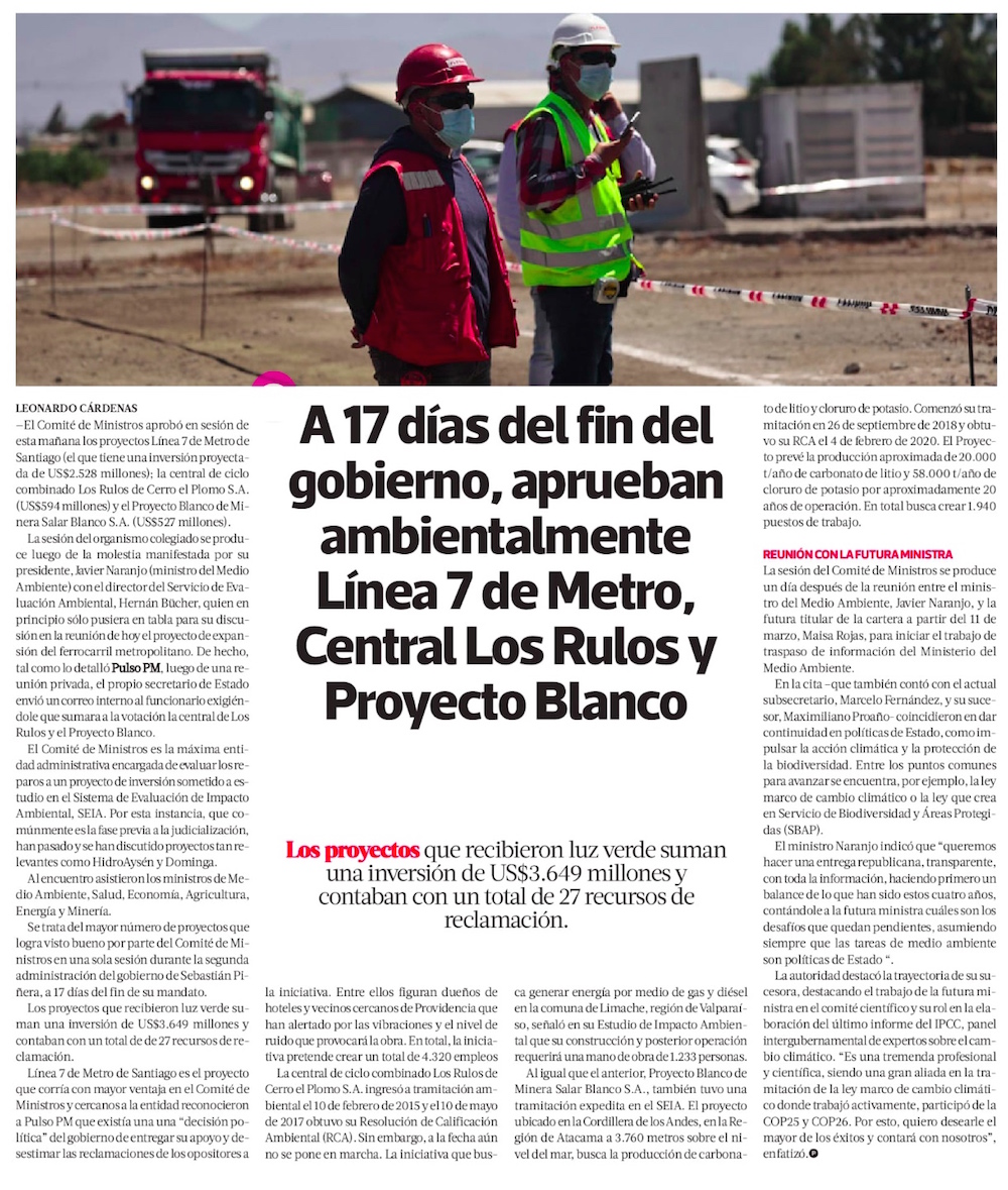 Comité de Ministros da luz verde ambiental a Línea 7 y Central Los Rulos - (La Segunda)