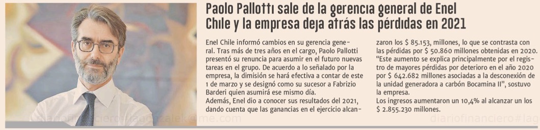 Enel Chile revierte pérdidas en 2021 y logra utilidades por más de $85.000 millones - (Pulso)