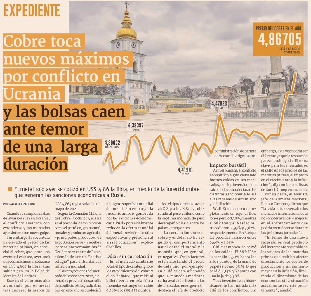 El precio del cobre llega a su nivel más alto en la historia mientras el petróleo sigue sobre US$120 por barril - (Pulso)