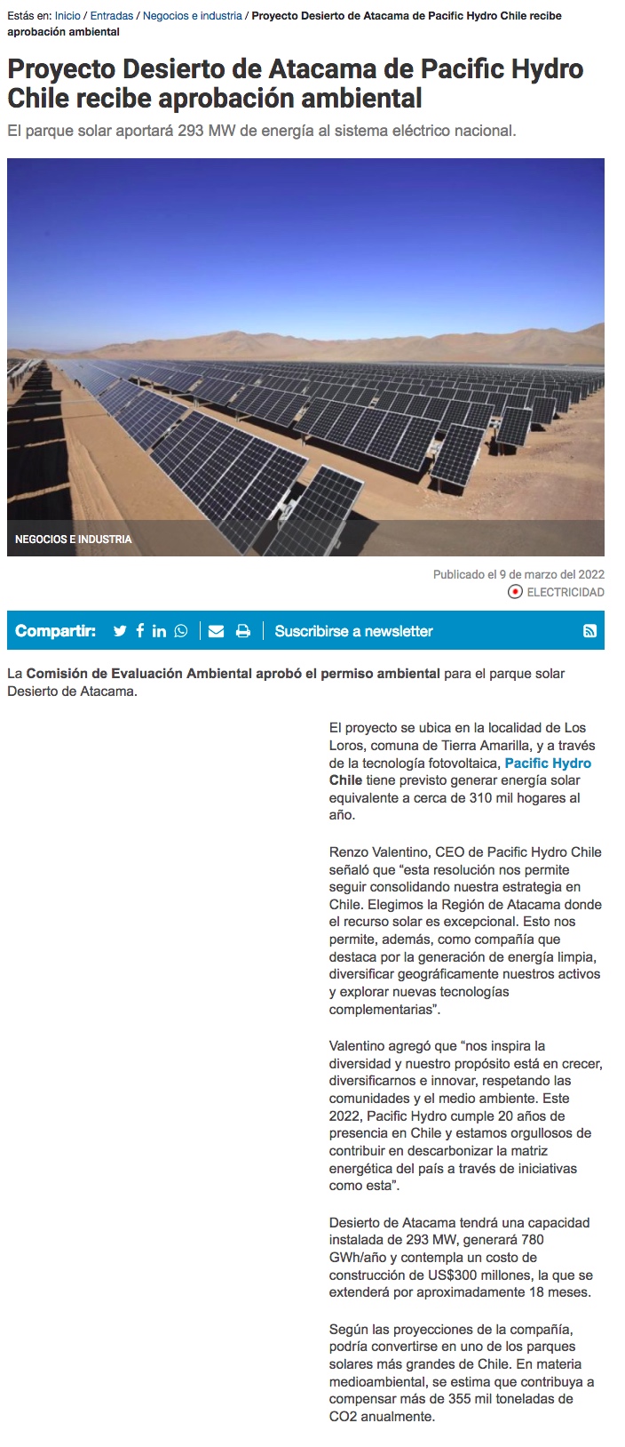 Aprueban el parque solar Desierto de Atacama - (El Diario de Atacama)