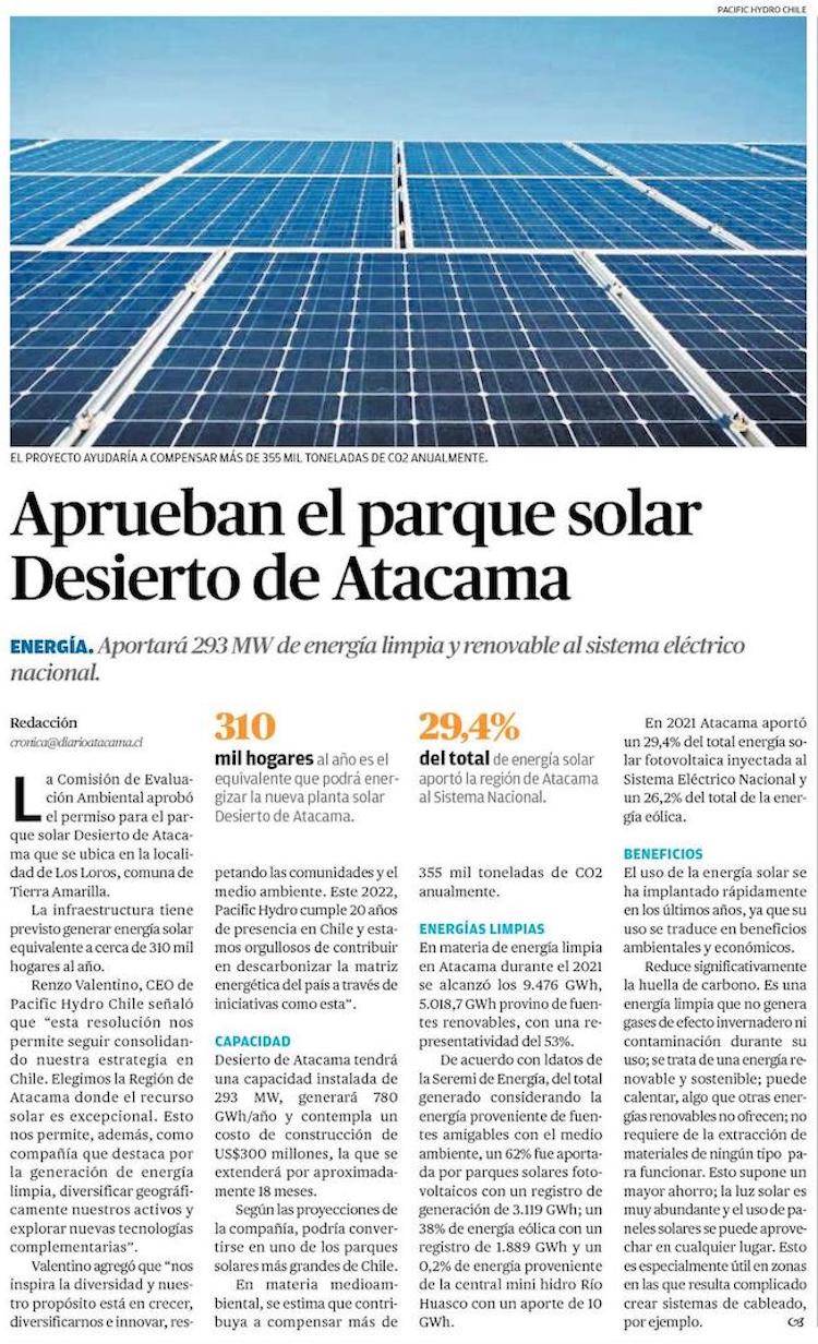 Proyecto Desierto de Atacama de Pacific Hydro Chile recibe aprobación ambiental - (revistaei.cl)
