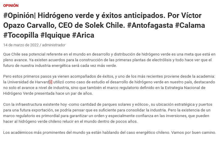 Hidrógeno verde y éxitos anticipados - (El Mostrador)